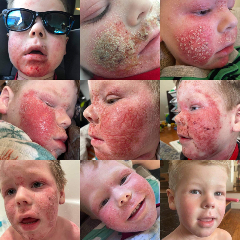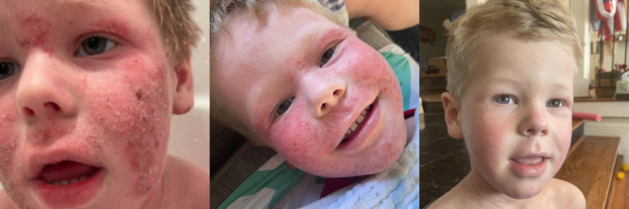 Colton is doing fantastic. We are now 22.5 months TSW and Colton is now 5 years old. Colton had a pretty bad flare this winter. He was hospitalized for a superinfection and had some pretty bad months. Since about May 2022, he has healed even more and is doing wonderful now – only having some minor itch and little rashes here and there.