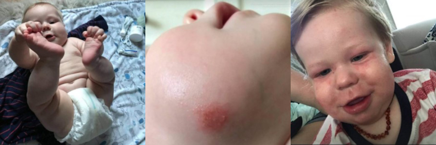 1. September 2017- Colton’s first topical steroid was at 1.5 months old. At 5 months old his skin was kept under control with hydrocortisone (seen next to him).