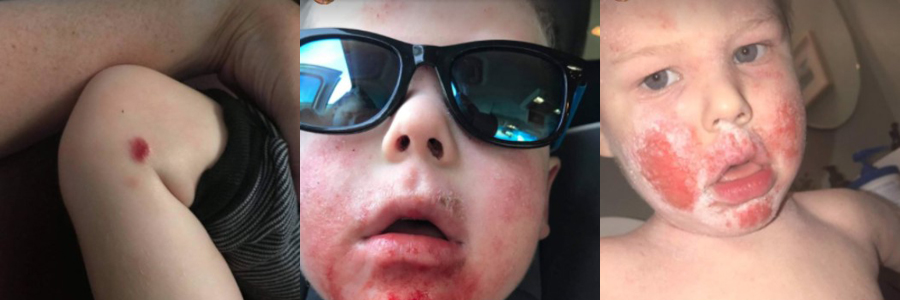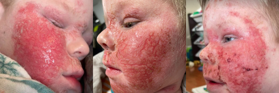 We have tried almost everything. Firstly, we sought care from Dr. Rapaport. He has been a great ally and we can’t thank him enough for all his help and support. Under his recommendation, we used Burow’s solution for the ooze on Colton’s face. This was the best treatment for his ooze and helped to dry it up and calm it down.