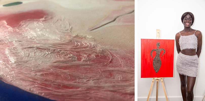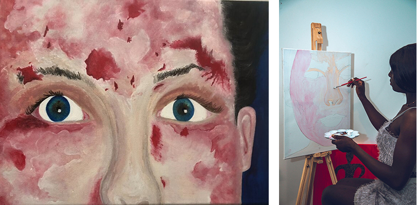 “The human skin portrait is made from my shedding TSW skin – it is about two years worth of skin from the worst. Art during TSW created a safe focus that allowed me to see beyond my current suffering at the time.” -Aramide Onashoga