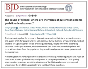 Many within the TSW community started off with eczema and developed TSW Syndrome after using topical steroids to treat their eczema. The patient voice has the power to improve care within the eczema community and to help prevent TSW Syndrome. The article highlights the critical need for the patient voice in eczema clinical practice guidelines.