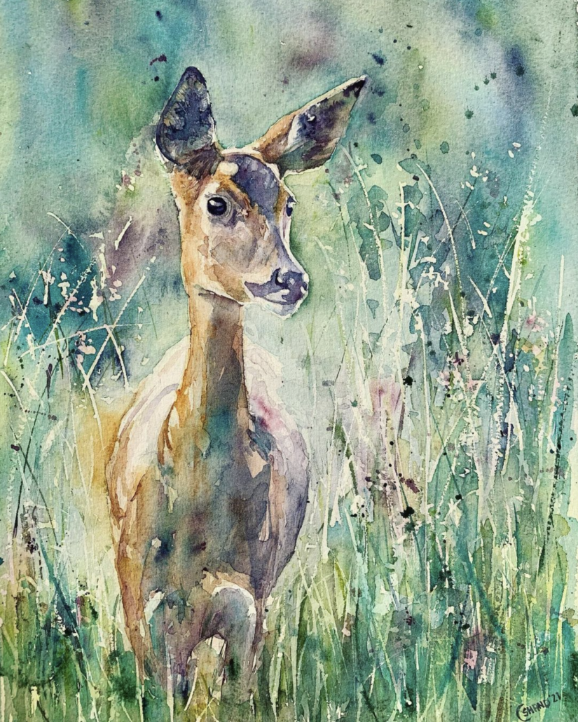 I love animals and nature and that’s what I paint. It’s my escapism and the thing that bring me solace. It’s an absolute relief. Watercolour is an amazing dynamic medium. When I‘m painting I’m totally in the moment, distracted from the itching and tiredness. The beautiful colours are so uplifting and create magic on the page with just a drop of water. I paint myself positive. It’s been my saviour!”