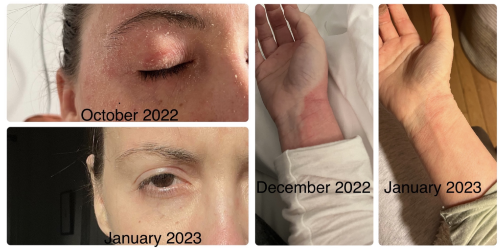 One snowy morning in 2022, I woke up with a swollen, red, burning face, tingling all over my body, and nausea. As someone with lifelong eczema and allergies, unexplained rashes were nothing new to me, but the systemic symptoms gave me pause. I called a local dermatologist and due to snow closures, I had a phone consultation. He diagnosed me with contact dermatitis and prescribed topical and oral steroids. Within 24 hours of taking the first dose of prednisone, my symptoms subsided. As a 25 year user of topical steroids for eczema, with long and short courses of oral steroids here and there, I considered them miracle drugs–this was no exception.