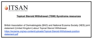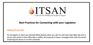 3. Access a template “Letter to Your Doctor” in ITSAN’s Advocacy Kit located in the Files section of ITSAN’s Private Facebook Support Group here. Another template is available from Scratch That UK, an “online information resource, community and awareness campaign” for TSW. Find their “Guide to Writing to Your MP About TSW” here.